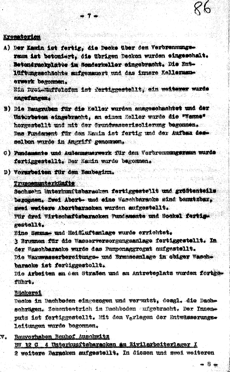 - Explanationary report from Karl Bischoff of 16 December 1942 on “the individual crematoriums and other special facilities” [Mattogno, STIA, p. 61]