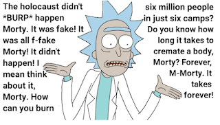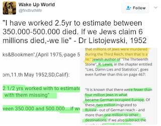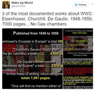 "Twitter denial" (this includes Facebook and other social networks, of course), as primitive as it is, is the main form of denial today. So it may be useful to compile a list of rebuttals to the most common memes. One such meme repository I found in one neo-Nazi twitter account, and in the beginning the tweets from the account were being responded to here, but the post is still being updated with various other tweets and memes.w